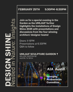 Join us for a special evening in the Garden as the UMLAUF further highlights the installations of Design Shine 2025 with presentations and discussions from the four winning architect/designer teams!