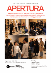 AiA Latinos in Architecture invite you to join us for Apertura, a fun and collaborative committee-driven event to strengthen our network, welcome new members, and set the tone for an exciting year ahead.