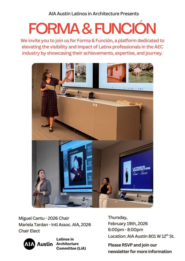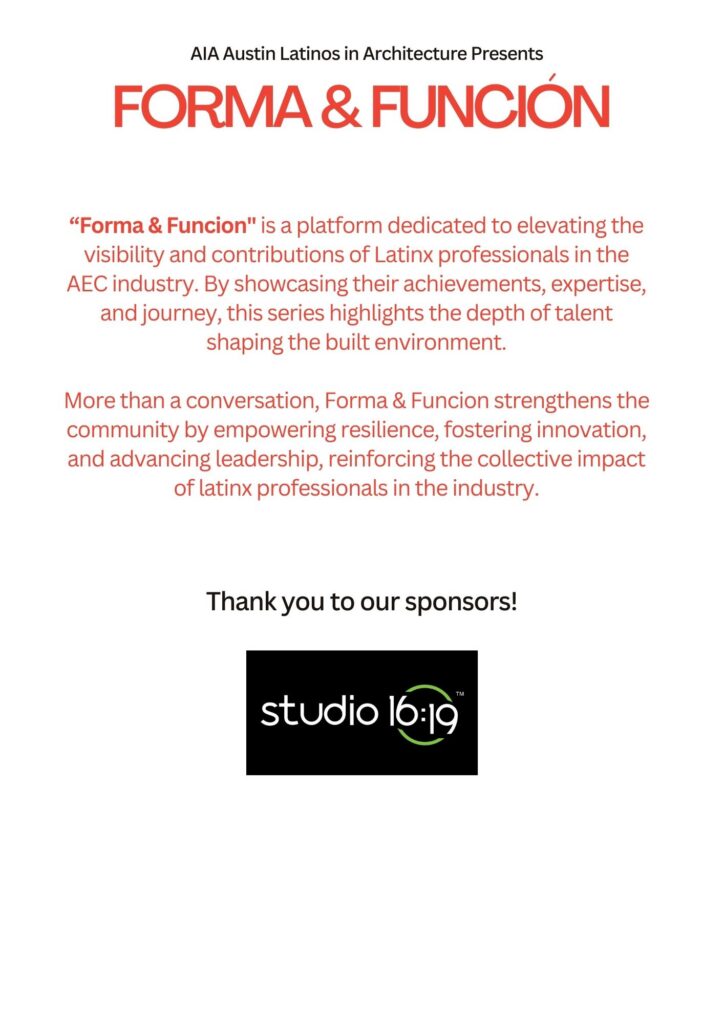 “Forma & Función” is a platform dedicated to elevating the visibility and contributions of Latinx professionals in the AEC industry. By showcasing their achievements, expertise, and journey, this series highlights the depth of talent shaping the built environment. More than a conversation, Forma & Función strengthens the community by empowering resilience, fostering innovation, and advancing leadership, reinforcing the collective impact of latinx professionals in the industry.