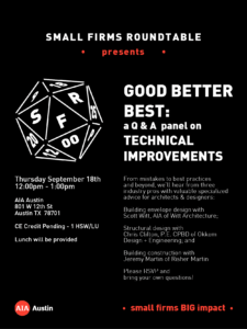 AIA Austin Small Firms Roundtable Presents GOOD BETTER BEST: a Q&A panel on Technical Improvements