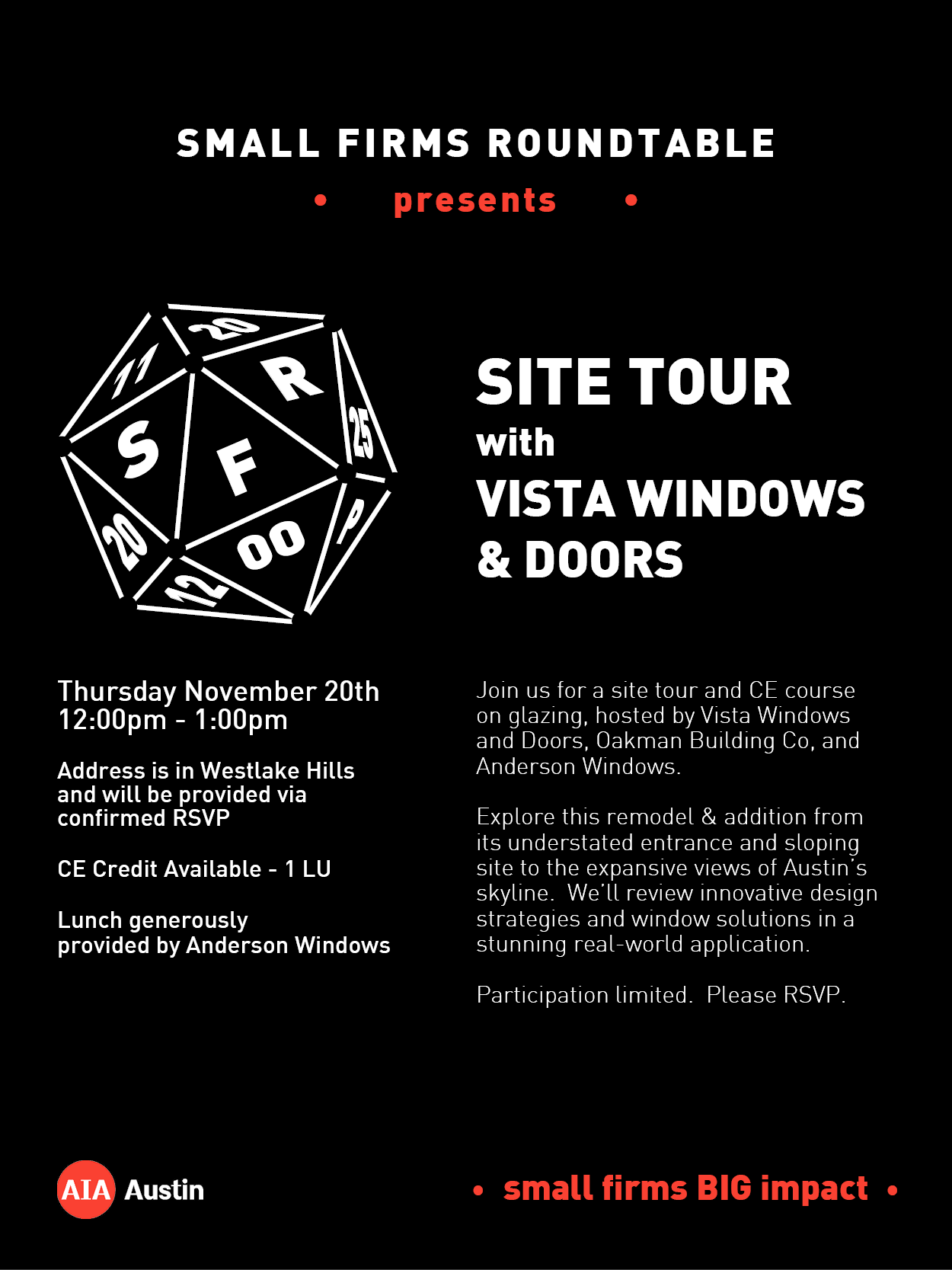 Join us on a walking tour and get to visit Architecture firms in Austin's vibrant downtown district! This networking event will give emerging professionals and students an opportunity to connect … Continued